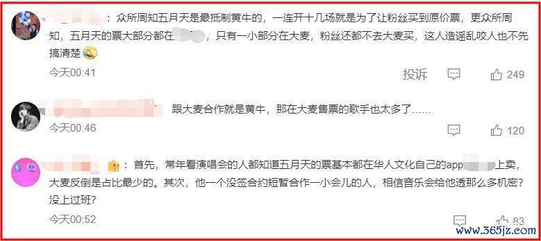 有网友说五月天一直最贬抑黄牛,还说平凡看五月天演唱会的齐知谈,五月天演唱会门票基本齐在华东谈主音乐我方的购票平台购买,大麦上的票占比很少。